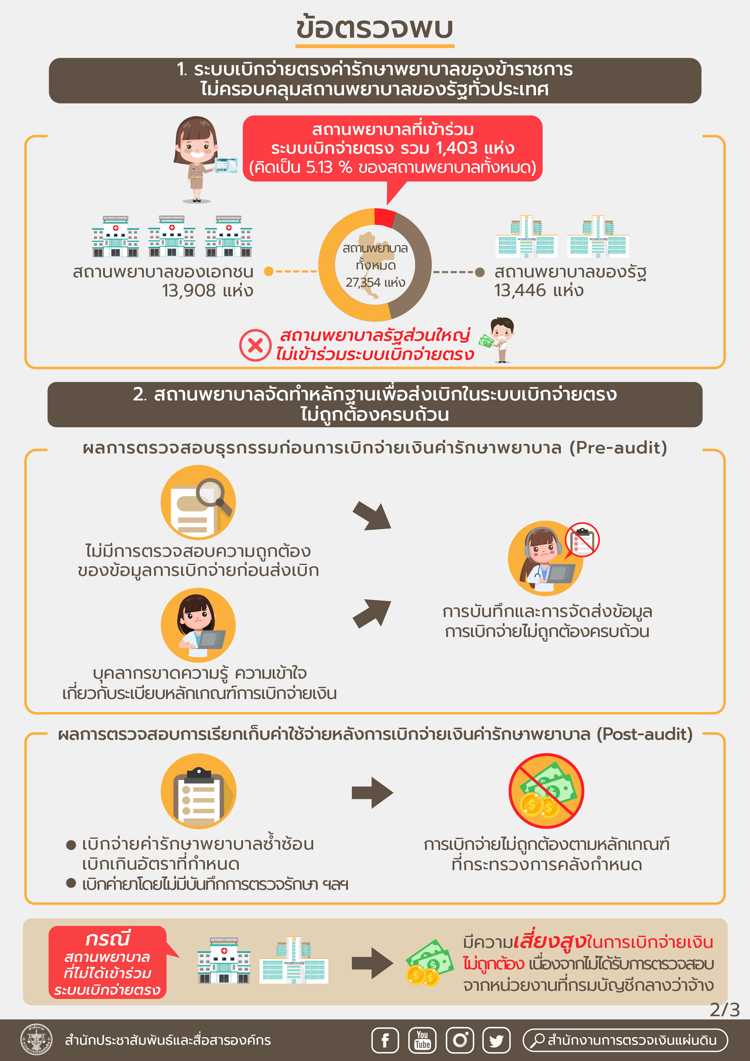 สตง. ห่วงปัญหาสวัสดิการรักษาพยาบาลข้าราชการ รุดให้คำแนะนำเพื่อให้การบริการครอบคลุมสถานพยาบาล ของรัฐทั่วประเทศ และลดการรั่วไหลของ