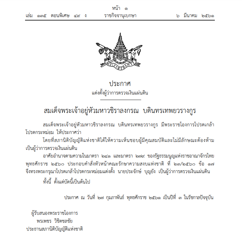 ราชกิจจานุเบกษา_แต่งตั้งผู้ว่าการตรวจเงินแผ่นดิน.pdf