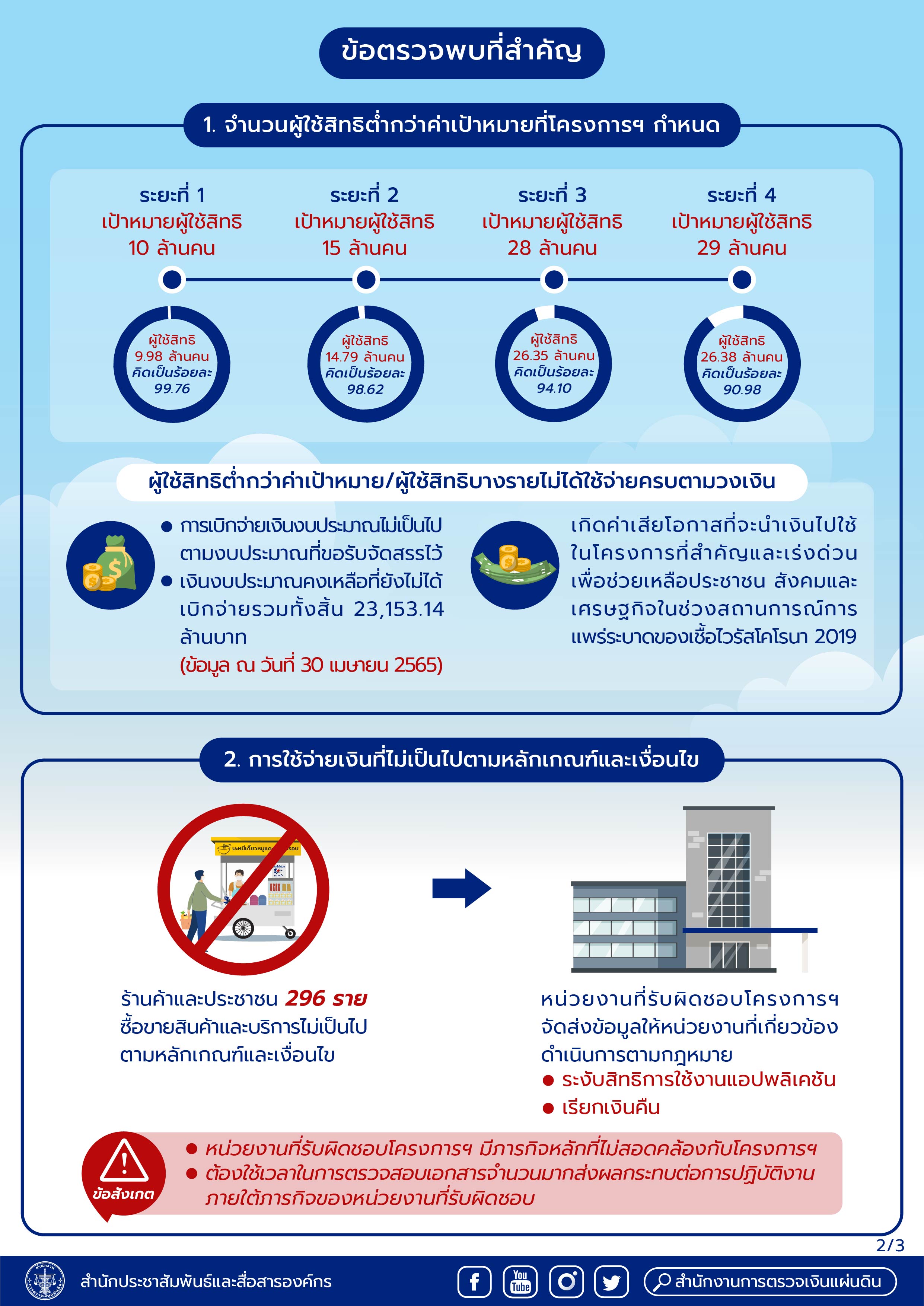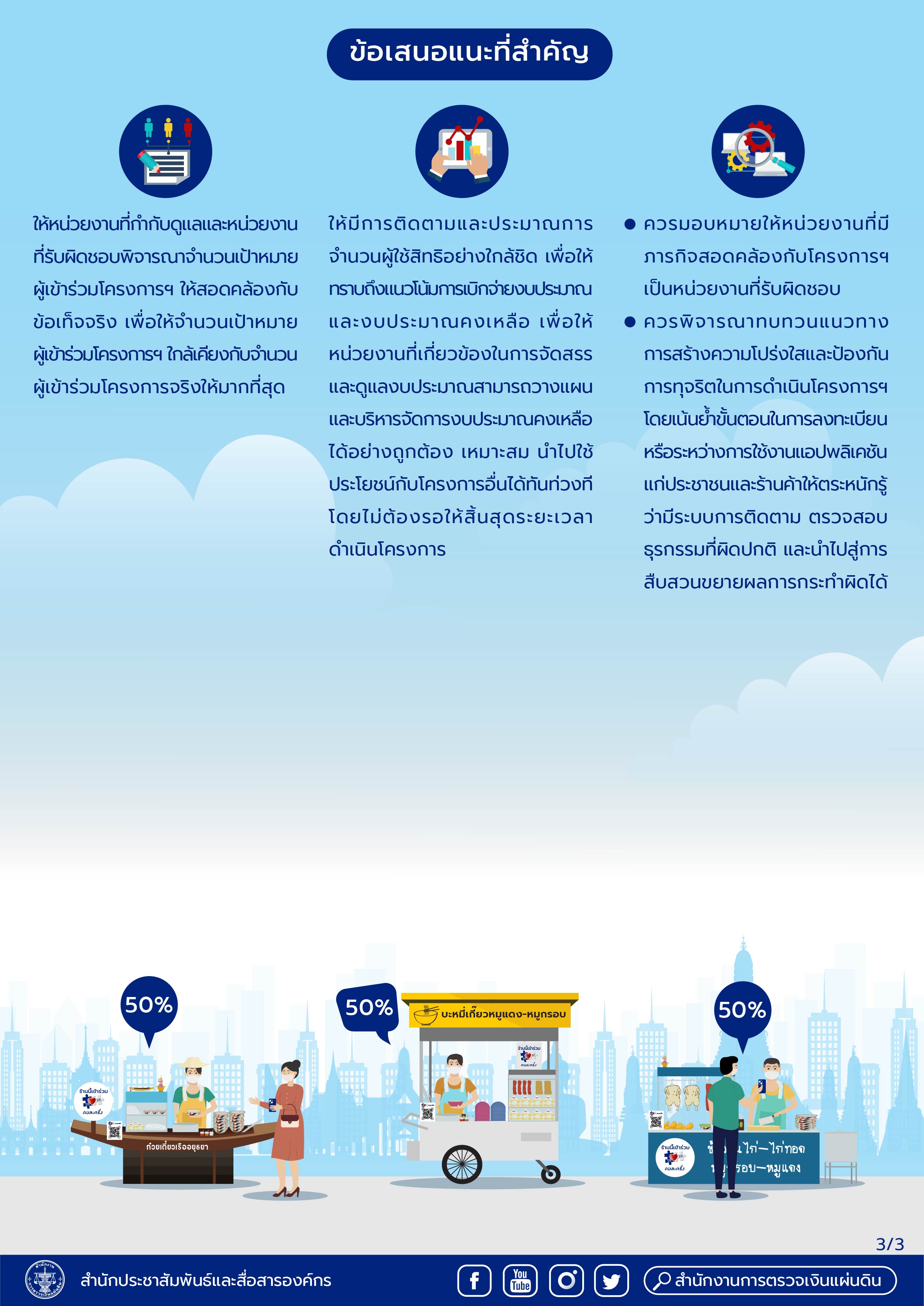 สตง. แจงผลการตรวจสอบโครงการคนละครึ่ง พร้อมให้ข้อเสนอแนะ เพื่อให้การดำเนินโครงการในระยะต่อไปเกิดผลสัมฤทธิ์และมีประสิทธิภาพ